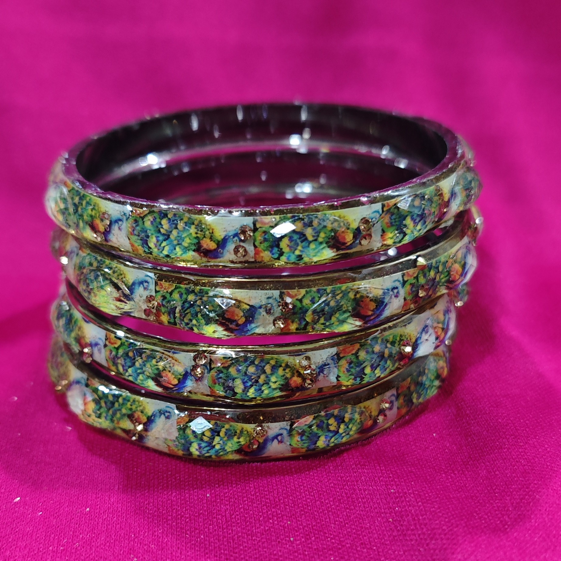 A set of 4 green tinted peacock bangles