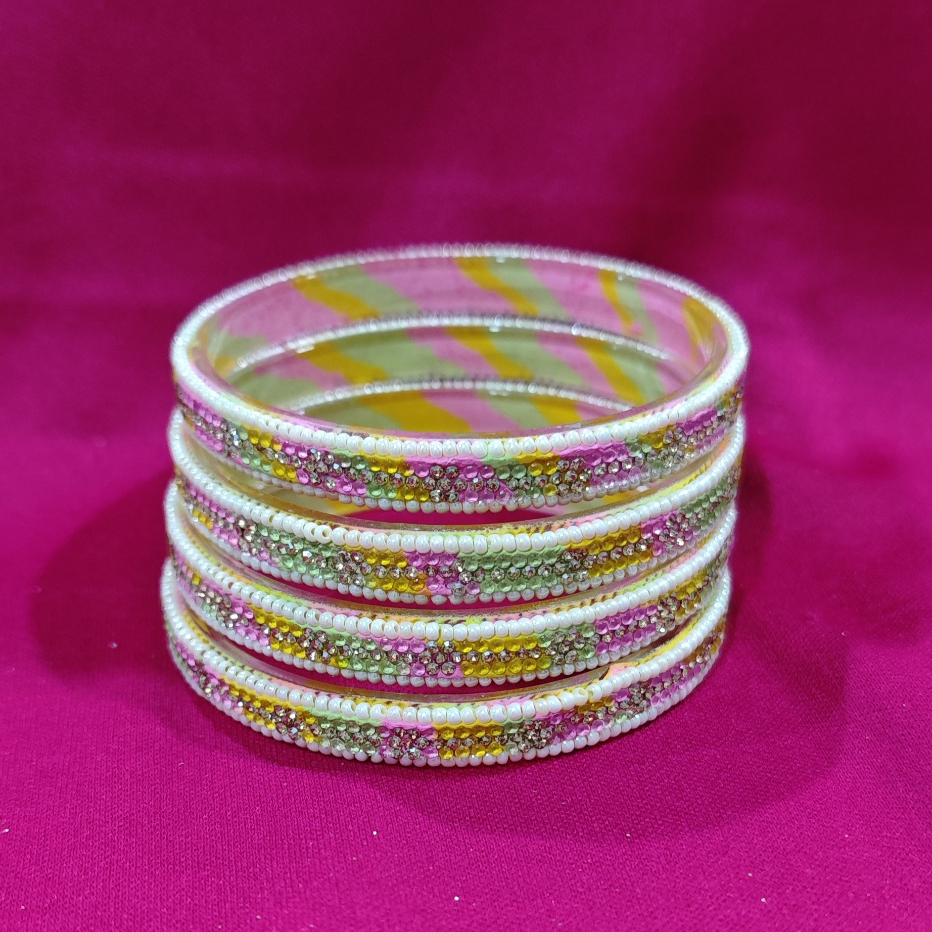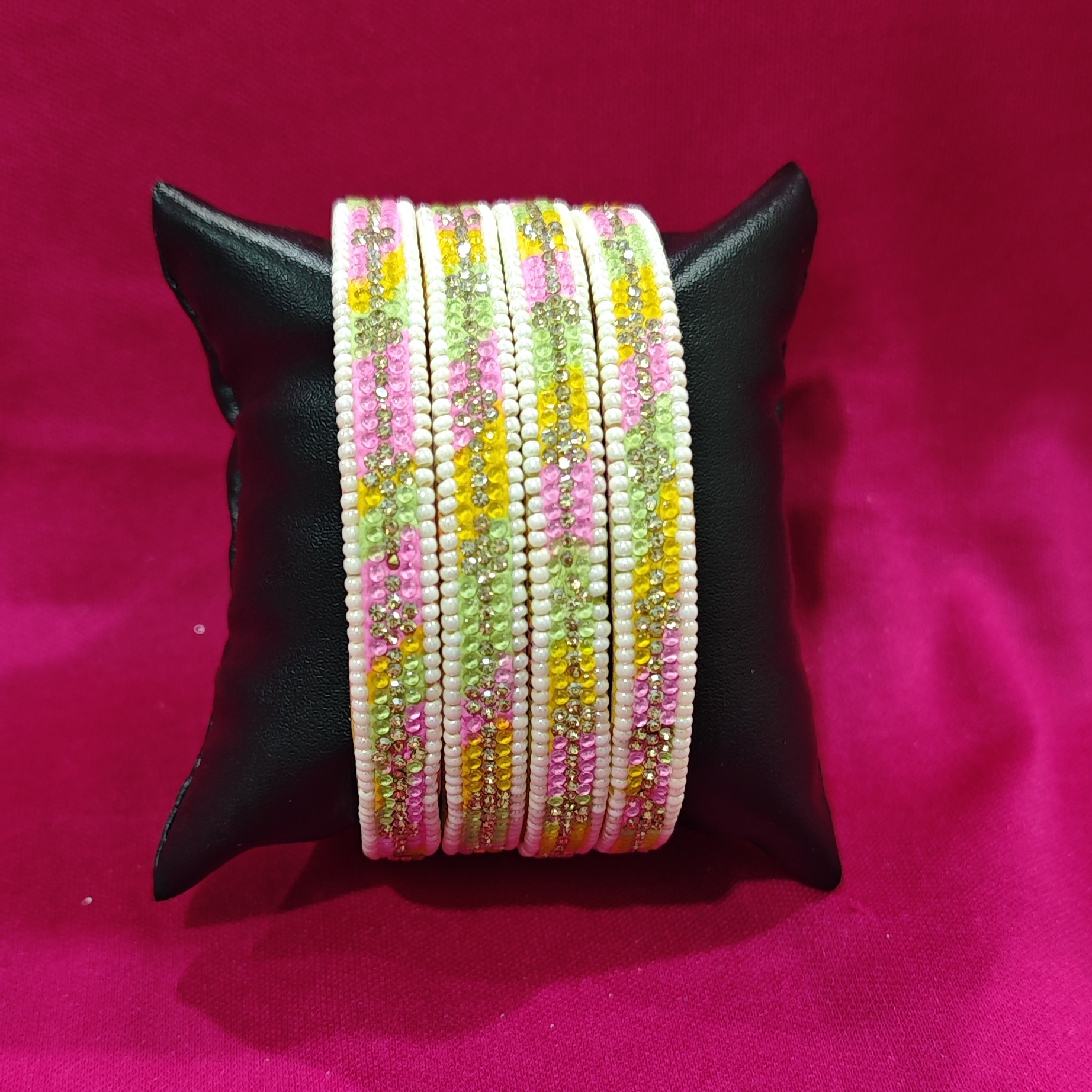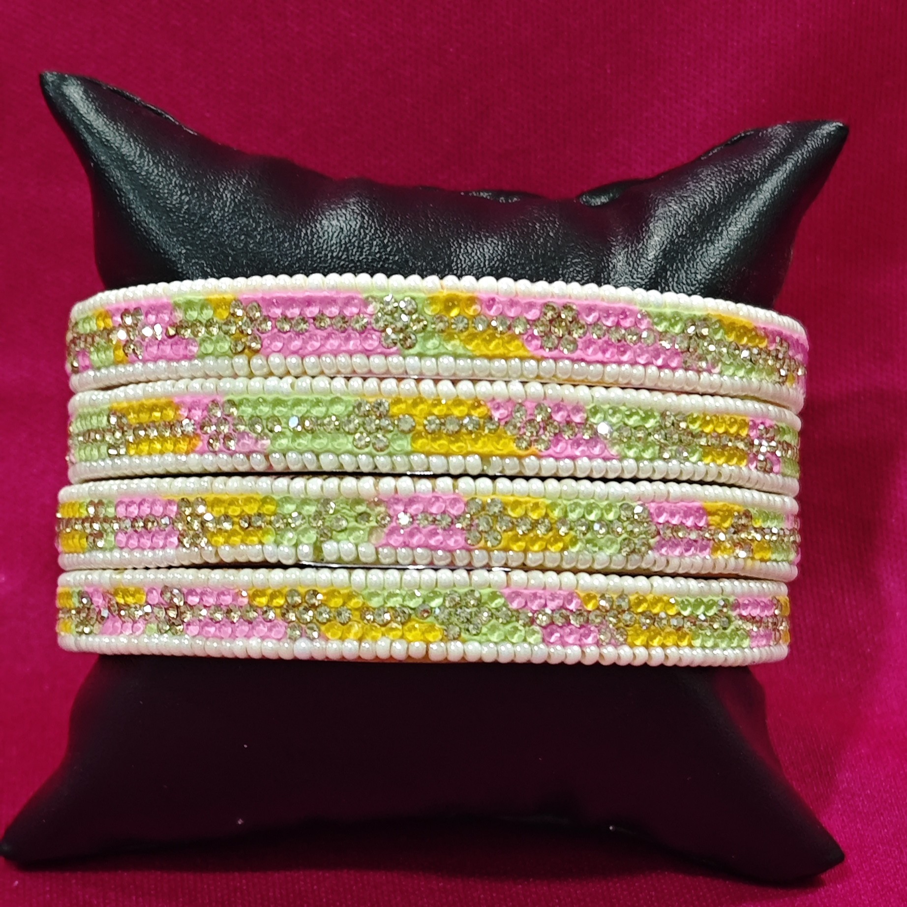 Softly enchanting, this set of four light pink and green tinted bangles blends pastel elegance with a refreshing dual-tone finish — perfect for adding a graceful pop of color to festive and traditional attire.
