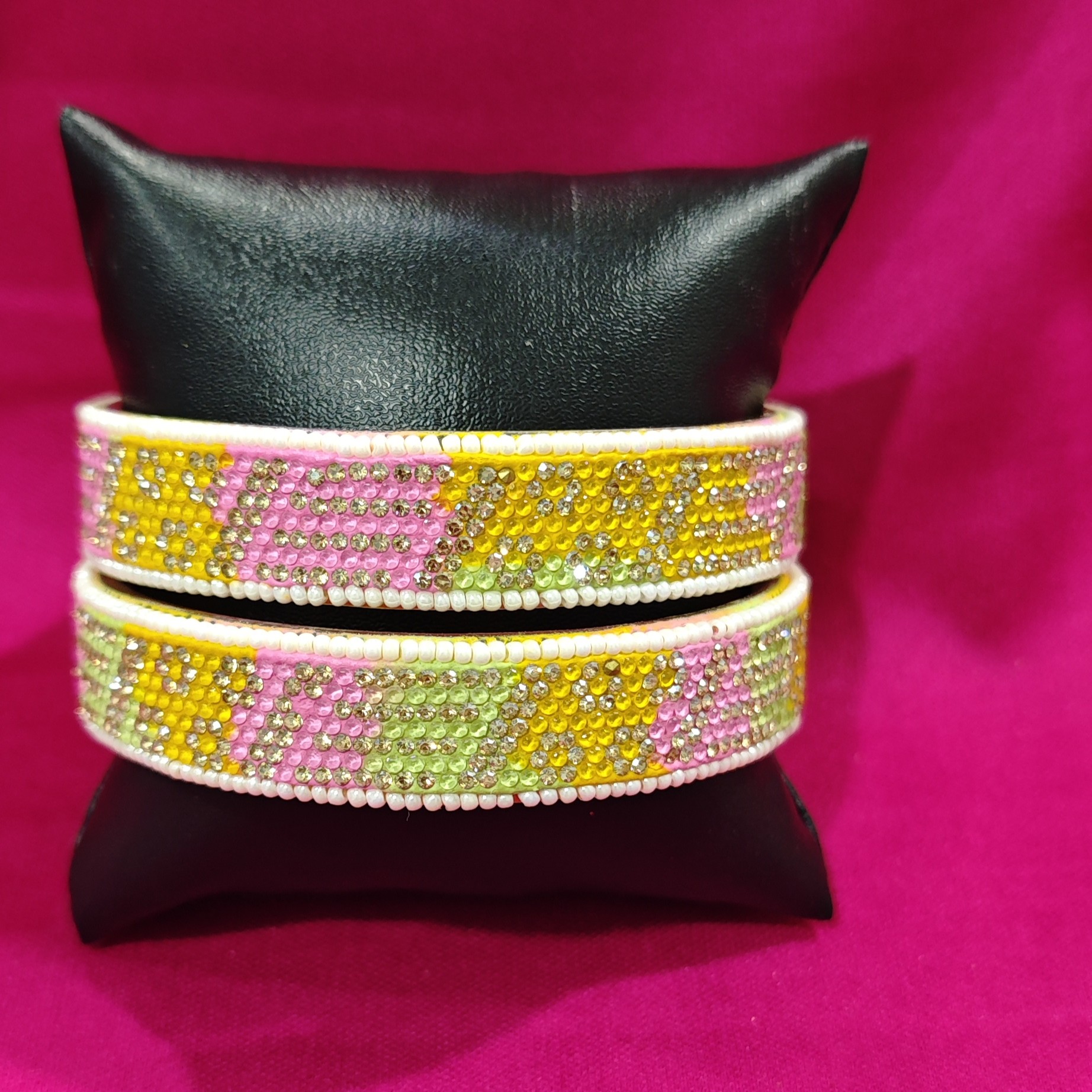 (Shipping Included)A set of 2 beautiful pink green tinted golden designer bangles
