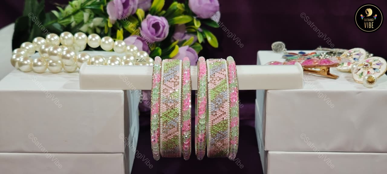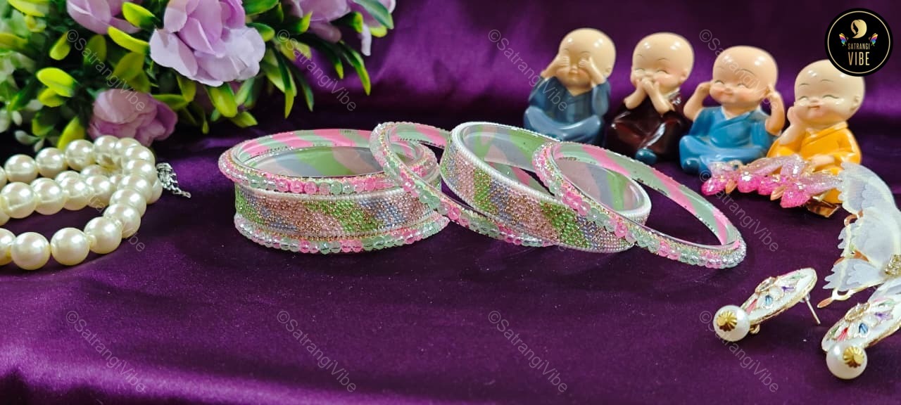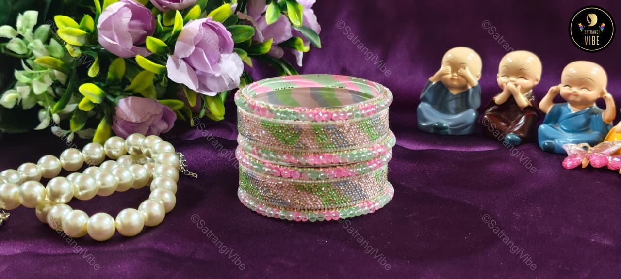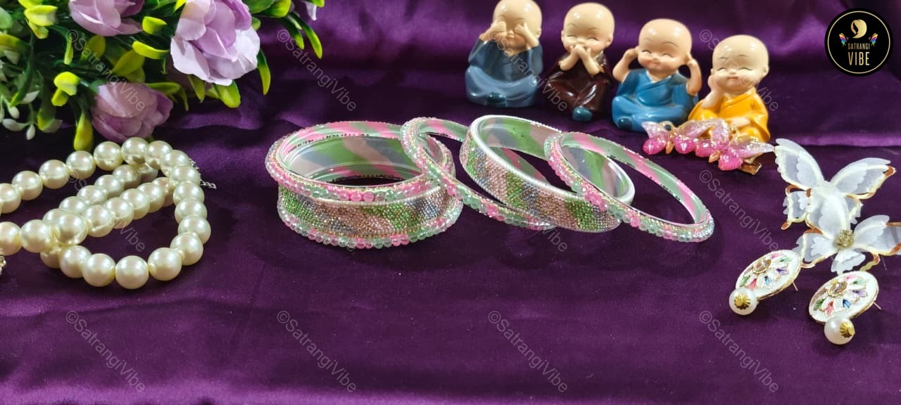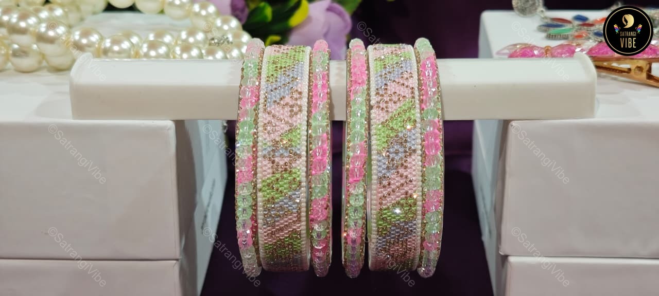 Celebrate color and confidence with this vibrant set of six bangles in refreshing green, playful pink, and serene blue. Designed to brighten your look and lift your spirit, these bangles are lightweight, stackable, and perfect for mixing and matching with your favorite outfits. Whether you’re dressing up for a festive event or adding a pop of color to your everyday style, these bangles bring joy to every gesture.