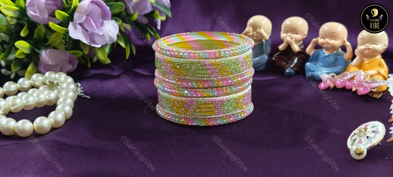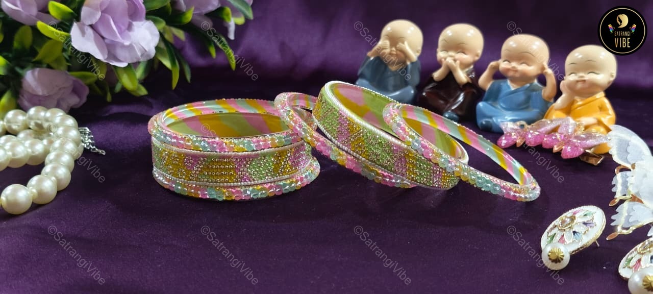 Set of Six Green Pink Yellow Bangles Set