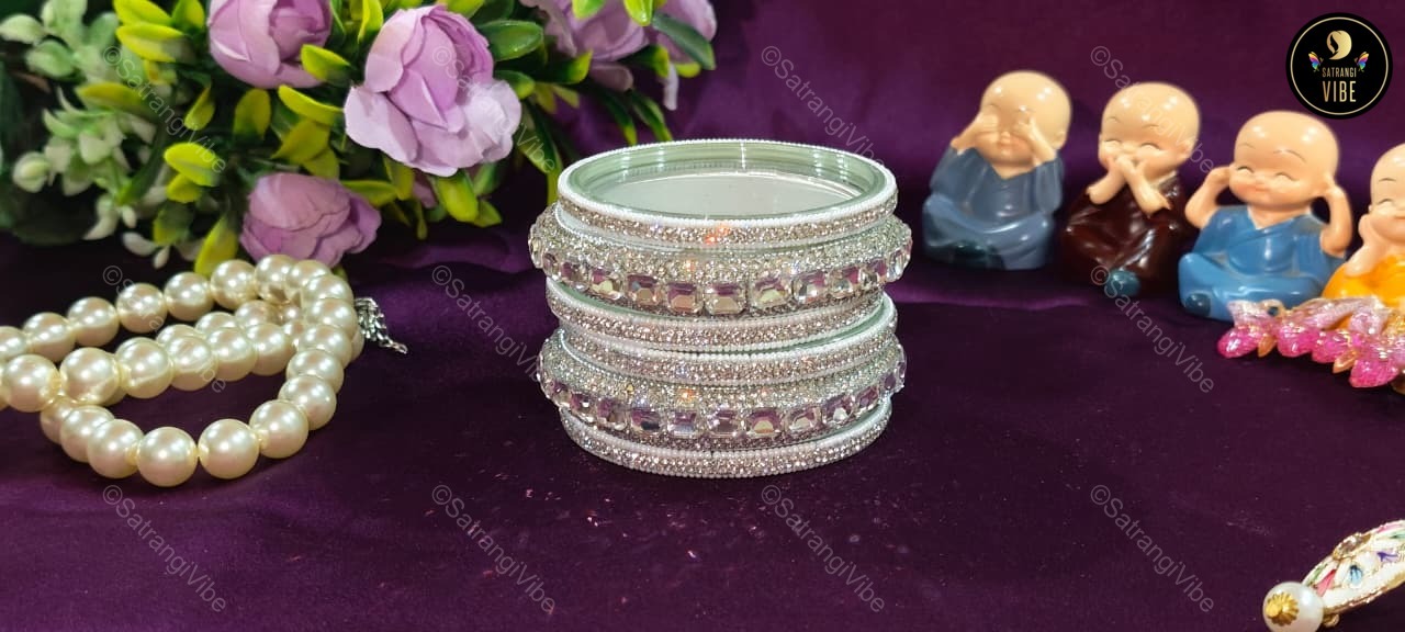 Radiate timeless charm with this exquisite set of six silver bangles, each adorned with shimmering crystals that catch the light with every gesture. Designed for the modern muse who honors tradition, these bangles blend minimalist elegance with festive sparkle. Whether you’re dressing for a wedding, a family celebration, or adding a touch of glamour to your everyday ensemble, this versatile set layers beautifully or shines solo.